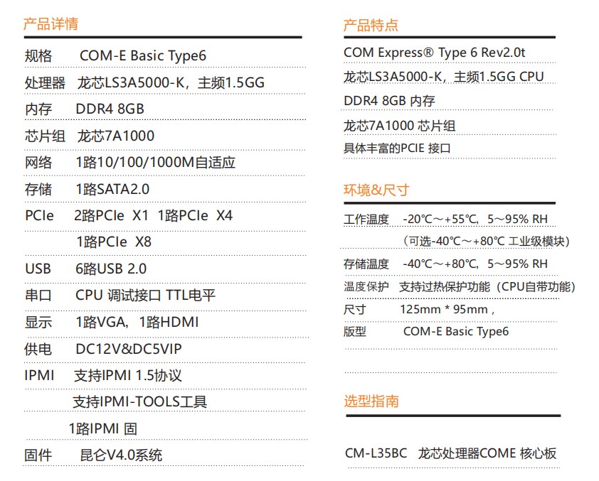 核心板采用龍芯3A5000CPU搭配龍芯7A1000橋設(shè)計(jì)COM- E Basic Type6版 型,板載 DDR4 8GB 內(nèi)存支持VGA,HDMI雙屏顯示輸出,是一款 國(guó)產(chǎn)自主可控集高性能,低功耗,高可靠性于一體的高集成度COME核心板,可廣泛應(yīng)用于能源等領(lǐng)域。
